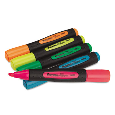 UNV18860 Desk Highlighter w/Comfort Grip, Chisel Tip, 5/Set By UNIVERSAL OFFICE PRODUCTS