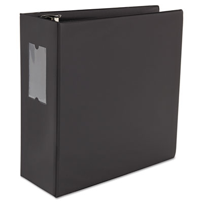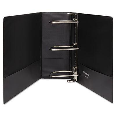 Say goodbye to page jamming and curling and hello to smooth page turning with this binder's D-Ring mechanism. D-Ring design means you can store 25% more documents in this binder than a comparable one fitted with round rings. Open and close triggers effortlessly for fast access to binder contents. Front cover folds back to create a compact, rigid "mobile desktop" for note-taking on-the-fly. Capacity Range [Max]: 5"; Sheet Capacity: 1,050; Color(s): Black.
