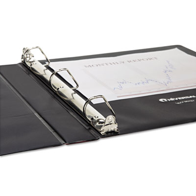 Say goodbye to page jamming and curling and hello to smooth page turning with this binder's D-Ring mechanism. D-Ring design means you can store 25% more documents in this binder than a comparable one fitted with round rings. Open and close triggers effortlessly for fast access to binder contents. Front cover folds back to create a compact, rigid "mobile desktop" for note-taking on-the-fly. Capacity Range [Max]: 1"; Sheet Capacity: 220; Color(s): Navy Blue.