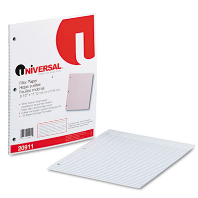UNV20911 Mediumweight 16-lb. Filler Paper, 11 x 8-1/2, College Ruled, White, 100 Shts/Pk By UNIVERSAL OFFICE PRODUCTS