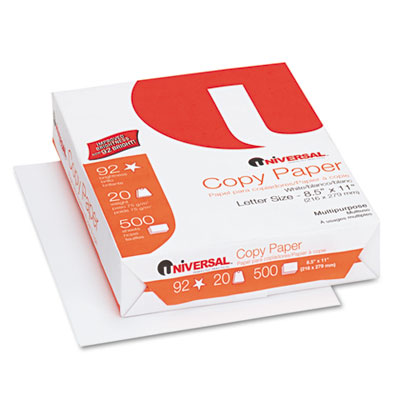 UNV2120PLT Copy Paper, 92 Brightness, 20 lb, 8-1/2 x 11, White, 200,000 Sheets By UNIVERSAL OFFICE PRODUCTS
