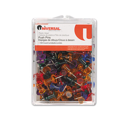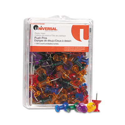 UNV31312 Colored Push Pins, Plastic, Gemstone, 3/8", 100/Pack By UNIVERSAL OFFICE PRODUCTS