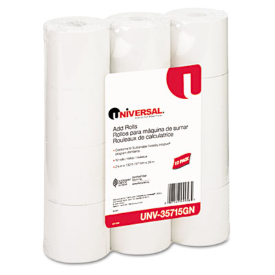 UNV35715GN Adding Machine/Calculator Roll, 16 lb, 2-1/4" x 130 ft, White, 12/Pack By UNIVERSAL OFFICE PRODUCTS