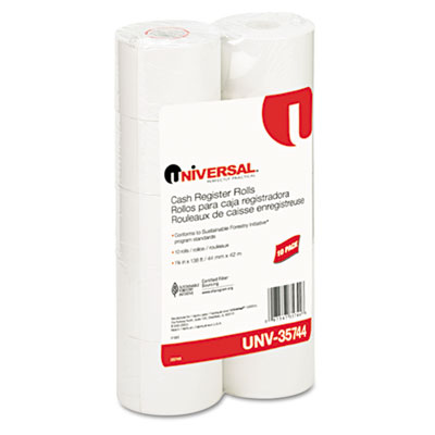 UNV35744 1-Ply Cash Register/Point of Sale Roll, 16 lb, 1/2" Core, 1-3/4"x138 ft, 10/Pack By UNIVERSAL OFFICE PRODUCTS