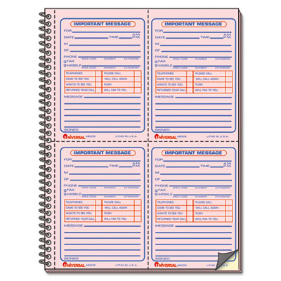 UNV48005 Wirebound Message Books, 3-3/16 x 5 1/2, Two-Part Carbonless, 200-Set Book By UNIVERSAL OFFICE PRODUCTS
