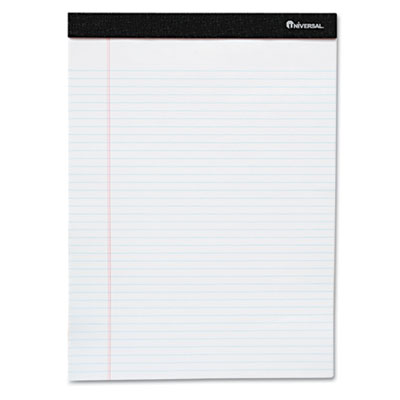 Heavyweight 20-lb. bright white paper with red margin rule is perforated for easy removal. Distinctive black head strip with subtle Universal® logo for a professional appearance. Rigid 60-pt. chipboard back offers support while writing away from a desk. Pad Type: Ruled; Sheet Size: 5" x 8"; Ruling: Jr. Legal.