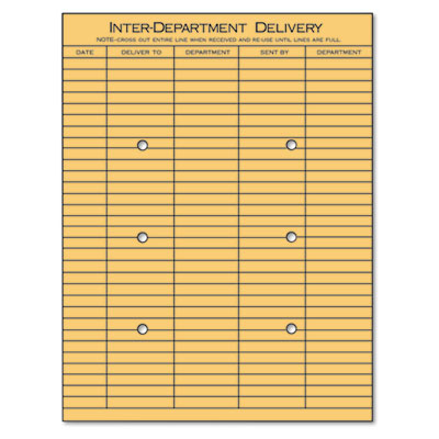 Rip-resistant Kraft stock is ideal for everyday interoffice use. String and button closure can be used again and again. Pre-printed routing table features 31 rows. Envelope Size: 10 x 13; Envelope/Mailer Type: Interoffice; Closure: String and Button.