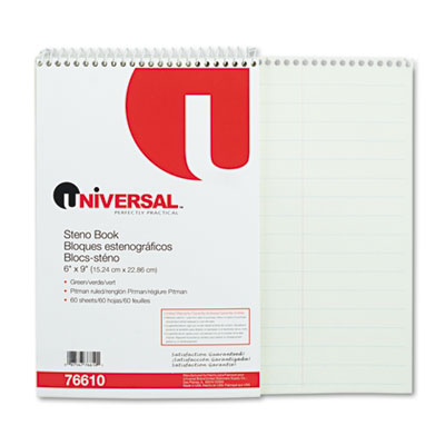 UNV76610 Steno Book, Pitman Rule, 6 x 9, Green, 60 Sheets/Pad By UNIVERSAL OFFICE PRODUCTS