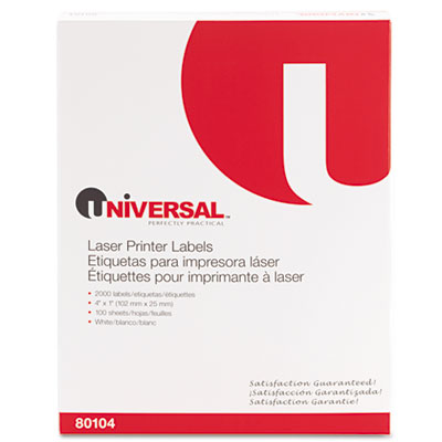 UNV80104 Laser Printer Permanent Labels, 1 x 4, White, 100 Sheets, 2000/Box By UNIVERSAL OFFICE PRODUCTS