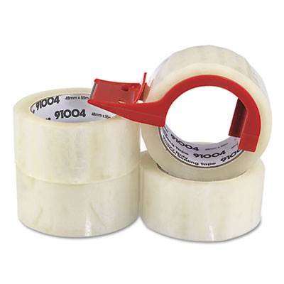 UNV91004 Carton Sealing Tape w/Dispenser, 2" x 60 yards, 3" Core, Clear, 4/Box By UNIVERSAL OFFICE PRODUCTS