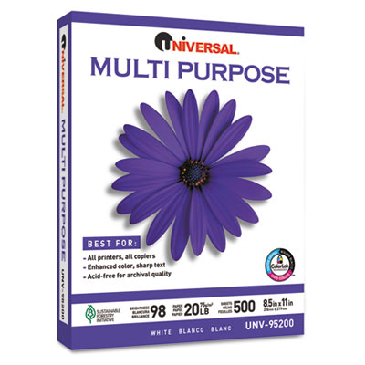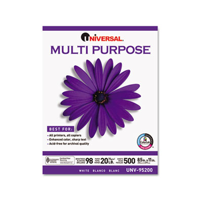 UNV95200 Multipurpose Paper, 98 Brightness, 20lb, 8-1/2 x 11, Bright White, 5000 Shts/Ctn By UNIVERSAL OFFICE PRODUCTS