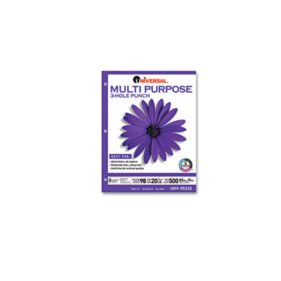 UNV95230 Multipurpose Paper, 98 Brightness, 20lb, Ltr, 3-Hole Punch, Bright WE, 5000/Ctn By UNIVERSAL OFFICE PRODUCTS