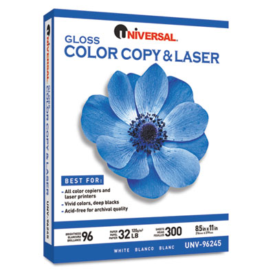 UNV96245 Gloss Color Copy/Laser Paper, 96 Brightness, 32lb, 8-1/2 x 11, WE, 300 Shts/Pk By UNIVERSAL OFFICE PRODUCTS