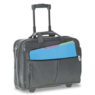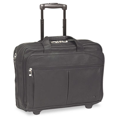 Removable CheckFast sleeve holds laptops up to 15.6" and helps you zip through airport security quickly. Front zippered organizer pocket includes room to organize all your business tools. Sturdy push-button rolling handle and in-line skate wheels. Cushioned carry handles and removable, adjustable shoulder strap let you carry this case the fastest, easiest and most comfortable way for any situation. For Device Type: Notebook; Material(s): Full-Grain Leather; Carrying Method: Retractable Handle.