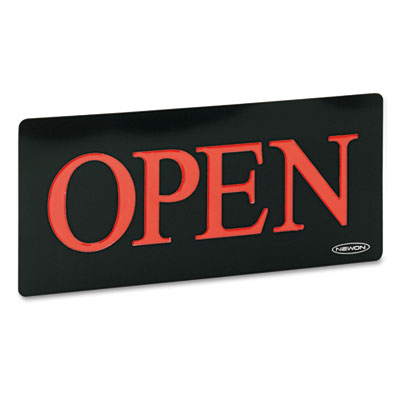 You'll find a prime spot in your window for this thin and lightweight brightly lighted sign. Opens the way to attracting new customers. Links together with lighted business hour sign (B). Uses 50% less electricity than neon and lasts longer, making it an energy-efficient choice. Operates at a safe 12 volts DC. Safe to operate 24/7. Frame Color: Black; Size: 13 1/4 x 1 x 6; Message(s): Open.
