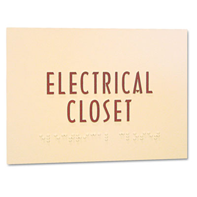 Custom messages and Braille manufactured to your specifications. Braille is raised and integrated with the background for a sturdy and vandal-resistant alternative. Durable material stands up to high traffic areas. Includes very high bond tape for easy installation. 1/8" thickness. Assorted colors. Width: 4"; Height: 8".