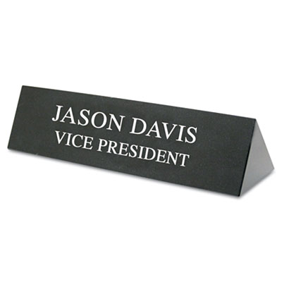 Custom engraved marble desk bar adds style and sophistication to any office. Text only. Accommodates up to two lines of text. Nameplates Type: Nameplate; Width: 8"; Height: 2".