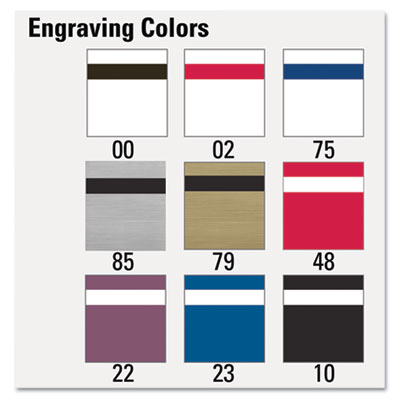 Create your own high quality, economical name badges. Choose from nine engraving colors and five fonts. Includes fastener. Text only. Accommodates up to three lines of text. Assorted colors. Nameplates Type: Nameplate; Width: 3"; Height: 1".