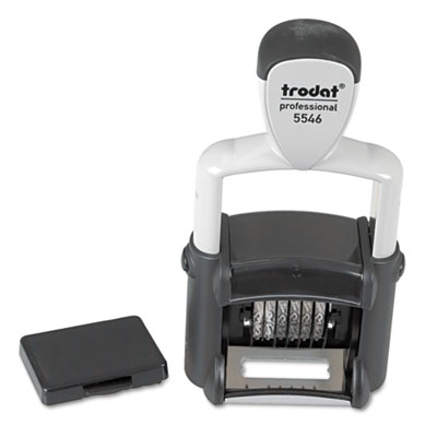 Strong and fast to tackle even the biggest numbering jobs. Steel frame construction stands up to heavy-duty use. A self-inking pad saves time—there's no need to stop and re-ink. Includes replaceable stamp pad that delivers up to 10,000 impressions. Stamp Type: Numberer; Ink Types: Self-Inking.