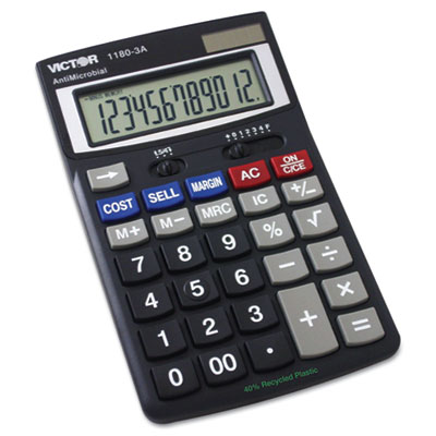 VCT11803A 1180-3A Antimicrobial Desktop Calculator, 12-Digit LCD By VICTOR TECHNOLOGIES