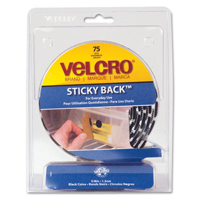 VEK90089 Sticky-Back Hook and Loop Dot Fasteners with Dispenser, 5/8 Inch, Black, 75/Roll By VELCRO USA, INC.