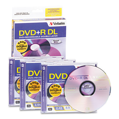 VER95014 Dual-Layer DVD+R Discs, 8.5GB, 2.4x, w/Jewel Cases, 3/Pack, Silver By VERBATIM CORPORATION
