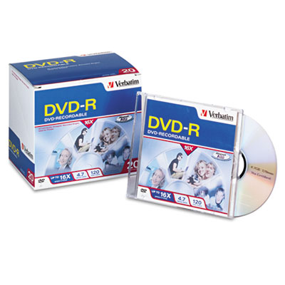 VER95069 DVD-R Discs, 4.7GB, 16x, w/Slim Jewel Cases, Matte Silver, 20/Pack By VERBATIM CORPORATION