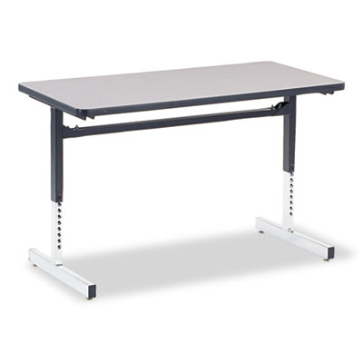 Offers a variety of layout options for learning and working environments. Arrange in rows or around perimeter of room to enable easy access for instructor. High-pressure laminate top with radius corners and protective T-mold vinyl banding. Cantilevered legs offer strength and support. Top Color: Gray Nebula/Chrome; Top Shape: Rectangular.