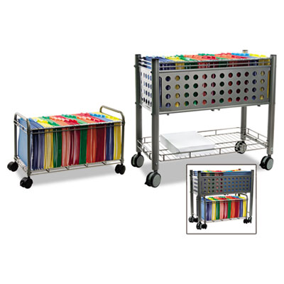 For letter size hanging file folders. Sliding file rails adjust to hold legal size file folders. Bottom storage shelf removes easily to add Companion File (VRT-VF52006, sold separately). Durable steel and wire construction. Four twin-wheel casters, two locking. Color: Matte Gray; Caster/Glide/Wheel: Four Twin-Wheel Casters (2 Locking).