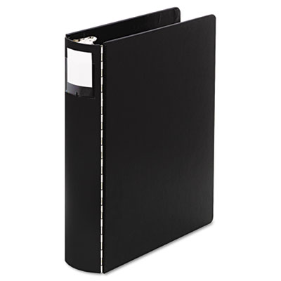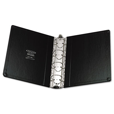 Vinyl is reinforced with heavyweight board that stands up to the toughest use. Heavy-duty round ring mechanism holds contents tightly in place. No ordinary casebound ring binder, this heavyweight storage giant holds its shape—even when subjected to rough, constant use. Heavy-Duty four round ring mechanism holds contents tightly in place. Capacity Range [Max]: 2"; Sheet Capacity: 375; Color(s): Black.