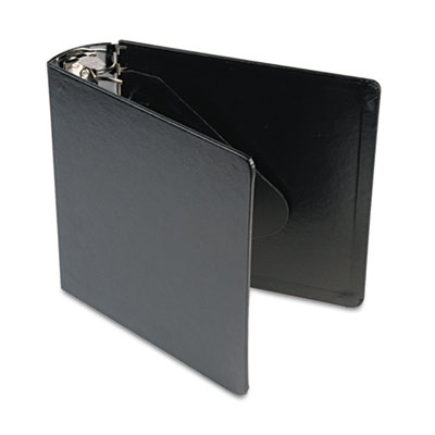 Vinyl is reinforced with heavyweight board that stands up to the toughest use. Heavy-duty round ring mechanism holds contents tightly in place. No ordinary casebound ring binder, this heavyweight storage giant holds its shape—even when subjected to rough, constant use. Equipped with DublLock® locking round rings to secure sheets without gaps. Three rings with metal hinge construction for extra-strength durability. Capacity Range [Max]: 3"; Sheet Capacity: 480; Color(s): Black.