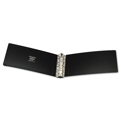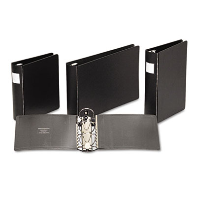 Vinyl is reinforced with heavyweight board that stands up to the toughest use. Heavy-duty round ring mechanism holds contents tightly in place. No ordinary casebound ring binder, this heavyweight storage giant holds its shape—even when subjected to rough, constant use. Equipped with DublLock® locking round rings to secure sheets without gaps. Three rings with metal hinge construction for extra-strength durability. Capacity Range [Max]: 2"; Sheet Capacity: 375; Color(s): Black.