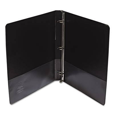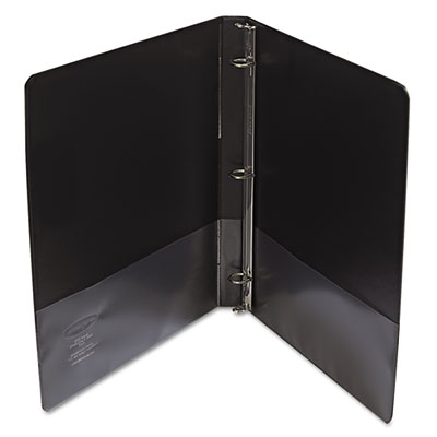 Keep it all together in a clearly professional way. Choose the binder that puts confidence in your hand with No-Gap round rings that stay tightly closed without gaps. Print Won't Stick covers resist toner transfer so ink from printed papers won't stick or mark binder, leaving a clean impression. PVC-free. Capacity Range [Max]: 1/2"; Sheet Capacity: 100; Color(s): Black.