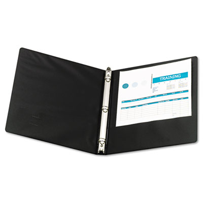 This basic binder keeps your papers in their place while the open and close triggers on the top and bottom make accessing your documents a snap. Two inside pockets provide additional room to store unpunched or loose papers. Capacity Range [Max]: 1/2"; Sheet Capacity: 100; Color(s): Black.