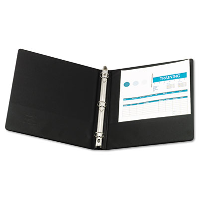 This basic binder keeps your papers in their place while the open and close triggers on the top and bottom make accessing your documents a snap. Two inside pockets provide additional room to store unpunched or loose papers. Capacity Range [Max]: 1"; Sheet Capacity: 175; Color(s): Black.