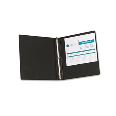 This basic binder keeps your papers in their place while the open and close triggers on the top and bottom make accessing your documents a snap. Two inside pockets provide additional room to store unpunched or loose papers. Keeping track of your projects just got easier. Organize projects with color-coded label sleeves and perforated white tab inserts that fit into the spine label holder. Each binder comes with a six color assortment of color sleeves. Capacity Range [Max]: 1"; Sheet Capacity: 175; Color(s): Black.