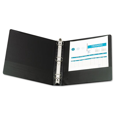 This basic binder keeps your papers in their place while the open and close triggers on the top and bottom make accessing your documents a snap. Two inside pockets provide additional room to store unpunched or loose papers. Capacity Range [Max]: 1 1/2"; Sheet Capacity: 280; Color(s): Black.