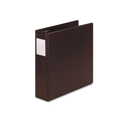Special No-Gap D-ring design keeps sheets from slipping through rings. D-rings hold 40% more sheets than same size round rings. Pocket Guards hold papers securely within binder. Label holder sleeve on spine provides quick and easy identification of contents. Tough, long-lasting hinge for added durability. PVC-free. Capacity Range [Max]: 2"; Sheet Capacity: 540; Color(s): Burgundy.