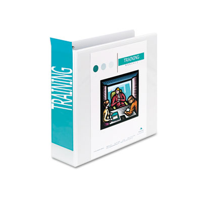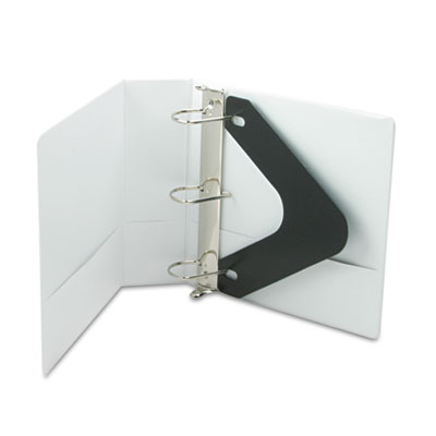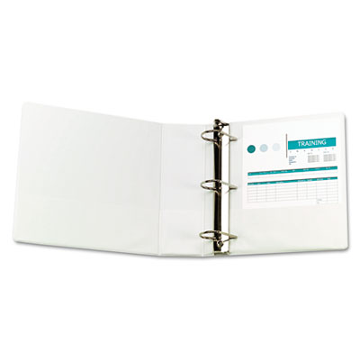 Increased-capacity, D-ring binder holds more paper than conventional round ring binders—all within a sleeker, slimmer profile. Binder rings are mounted on the back cover, making it easy to fold the cover back and under the binder. Folded back front cover can double as a handy writing surface. Two inside pockets provide additional storage. Sturdy, clear vinyl covers make labeling simple—plus they're tear and crack-resistant. PVC free. Capacity Range [Max]: 3"; Sheet Capacity: 600; Color(s): White.
