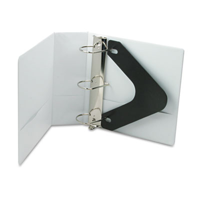 Increased-capacity, D-ring binder holds more paper than conventional round ring binders—all within a sleeker, slimmer profile. Binder rings are mounted on the back cover, making it easy to fold the cover back and under the binder. Folded back front cover can double as a handy writing surface. Two inside pockets provide additional storage. Sturdy, clear vinyl covers make labeling simple—plus they're tear and crack-resistant. PVC free. Capacity Range [Max]: 4"; Sheet Capacity: 700; Color(s): White.