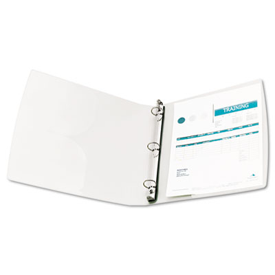 Durable poly shell with a see through design makes finding that important page easier than ever. Back-mounted rings offer extended flexibility when organizing material within the binder. Cover material prevents printer and copier toner transfer. Extra large vertical pockets for holding loose papers—up to 15 sheets each. Capacity Range [Max]: 1 1/2"; Sheet Capacity: 280; Color(s): Clear.