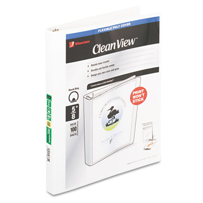WLJ43331 Print-Won't-Stick Flexible Poly Round Ring View Binder, 5/8" Capacity, White By WILSON JONES CO.