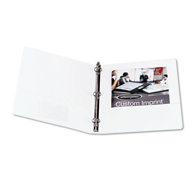 Customize and personalize with ease. Front logo pocket lets you put your company logo on every binder quickly and efficiently. The cover wraps, so one page does it all! Features two inside pockets and business card holder. Capacity Range [Max]: 1"; Color(s): White.