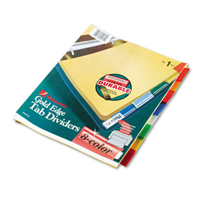Printable inserts work with preset templates and most leading software. Gold reinforced binding edge for strength in resisting tears. Three-hole punched for use in standard ring binders. Laser and inkjet printer compatible. Tab Style: 8-Tab; Tab Color(s): Multicolor; Index Divider Size: 11 x 8 1/2.