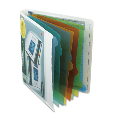 - Tab sheet slides into back pocket so titles show through transparent index dividers; recessed front cover keeps tabs in view at all times.