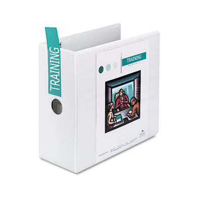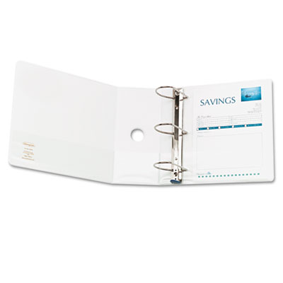 Put your best look forward—this binder is clearly distinctive, smart and innovative. Experience the effortless Single-Touch ring that allows you to open and close with a single, light touch—no more pinched fingers. Locking No-Gap D-Rings stay tightly closed without gaps and hold 40% more paper than same size round rings. EasySpine™ insert makes it a breeze to insert your custom spine label without creases, rips or frustration. Print Won't Stick covers resist toner transfer so ink from printed papers won't stick or mark binder, leaving a clean impression. PVC-free. Capacity Range [Max]: 5"; Sheet Capacity: 1,050; Color(s): White.