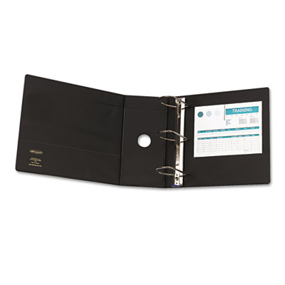 The ultimate professional! Get it together with ultimate style. Take advantage of the look, touch and professional appeal of success. This binder exudes the finest innovation. Experience the effortless Single-Touch ring that allows you to open and close with a single, light touch—no more pinched fingers. Locking No-Gap D-Rings stay tightly closed without gaps and hold 40% more paper than same size round rings. PVC-free. Make it easy to load. Capacity Range [Max]: 5"; Sheet Capacity: 1,050; Color(s): Black.
