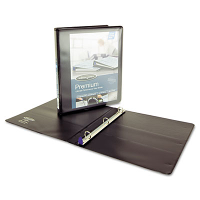 Effortless Single-Touch ring lets you open and close with a single, light touch. Special No-Gap D-Ring design keeps rings tightly closed so papers won't fall out. CleanView™ material throughout resists toner transfer so ink from printed papers won't stick or mark binder, leaving a clean impression over time. Interior pockets provide additional storage. Capacity Range [Max]: 2"; Sheet Capacity: 375; Color(s): Black.