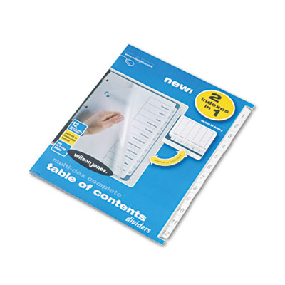 Just print or type titles on copymaster or laser practice sheet, then use a copier to produce as many sets as you need. Clear, textured poly cover sheet protects Table of Contents page. Three-hole punched for use in standard ring binders. Easy formatting with free templates available on manufacturer's website. Tab Style: 12-Tab; Tab Color(s): White; Index Divider Size: 11 x 8 1/2.