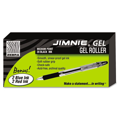 ZEB14410 Jimnie Roller Ball Stick Gel Pen, Black Ink, Medium, 24 per Box By ZEBRA PEN CORP.